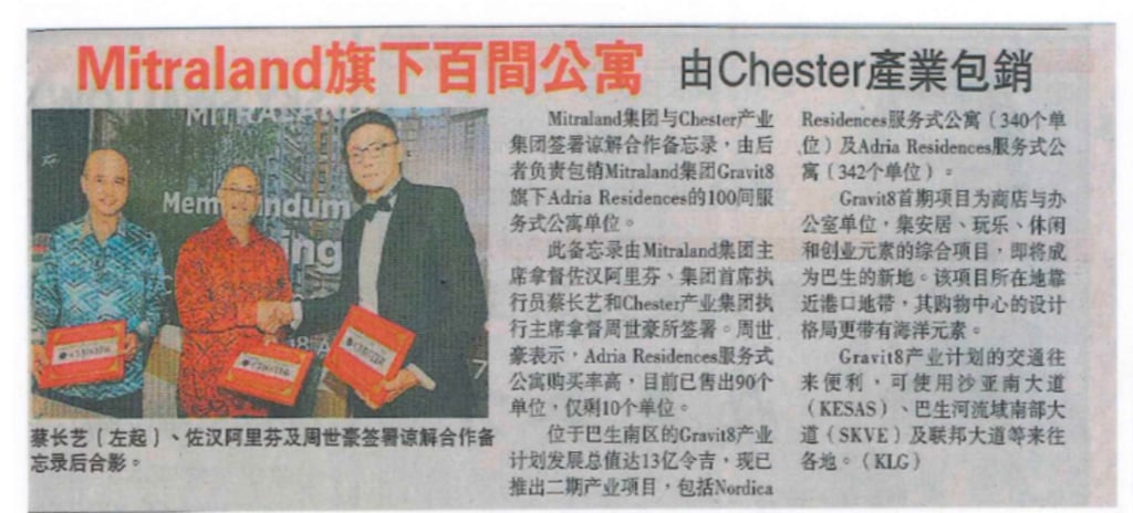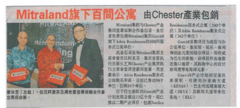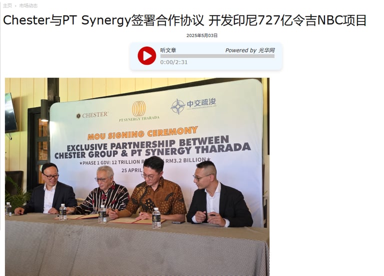 Chester与PT Synergy 签署合作协议 开发印尼727亿令吉NBC项目