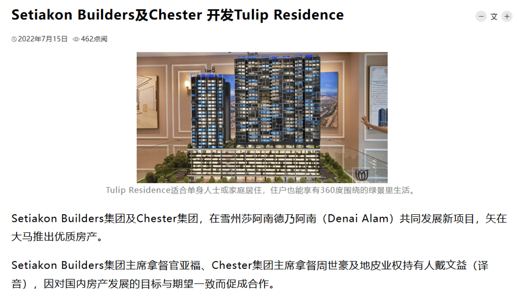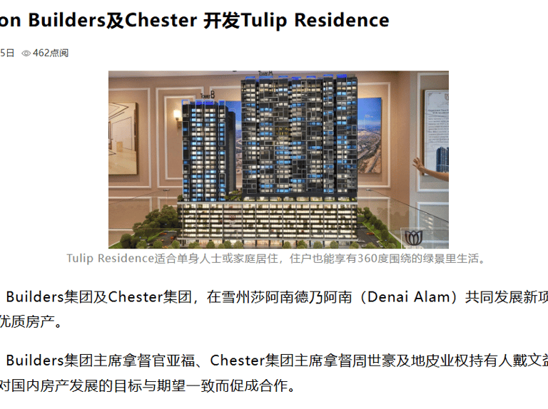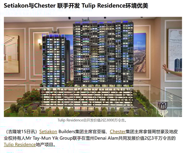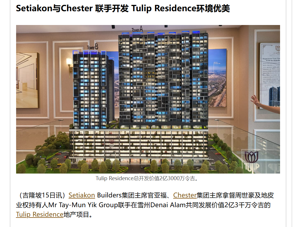 Setiakon与Chester 联手开发Tulip Residence环境优美