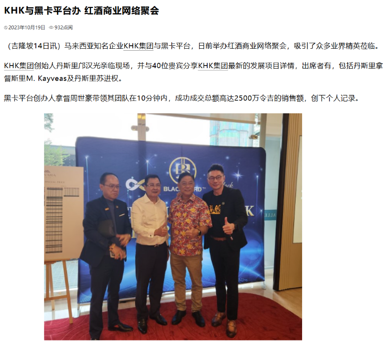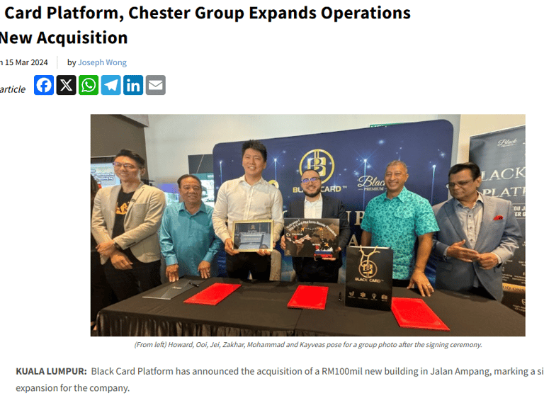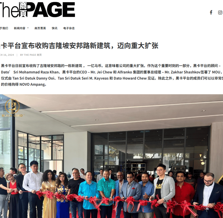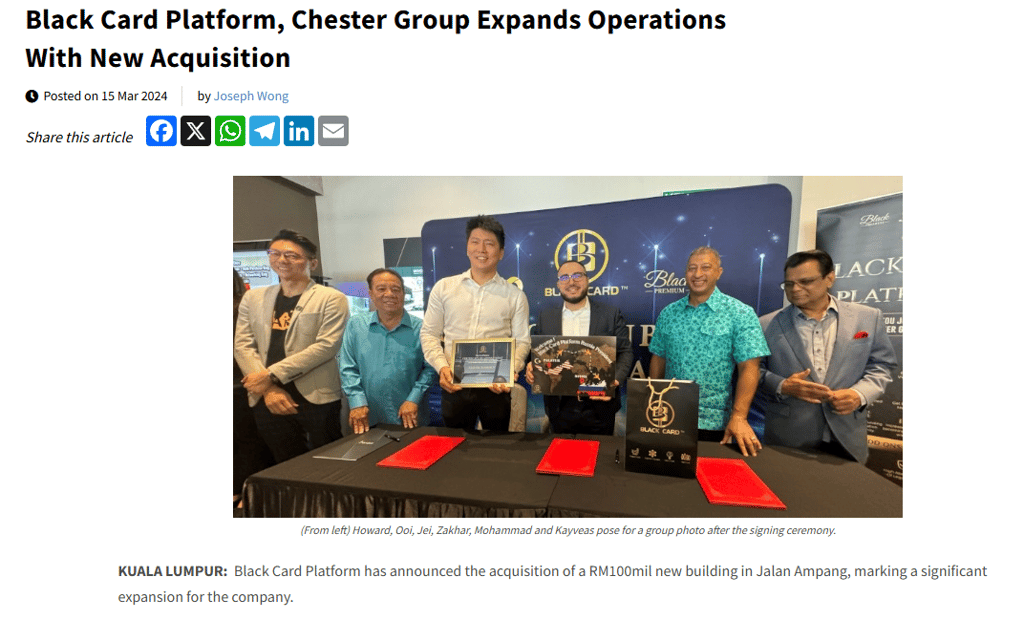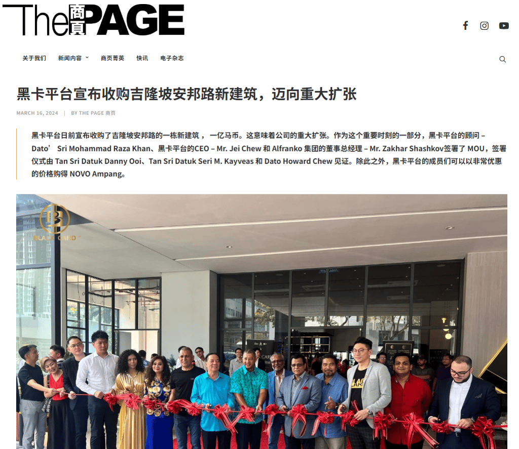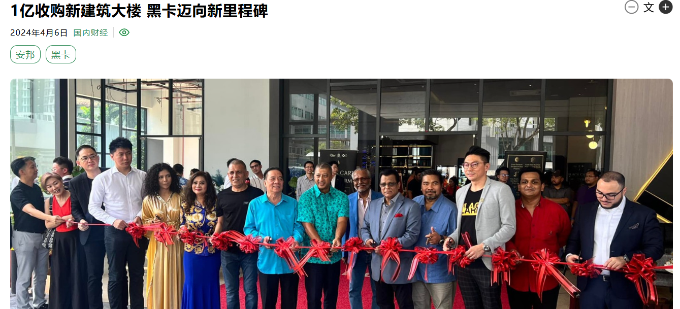 黑卡平台宣布收购吉隆坡安邦路新建筑,迈向重大扩张