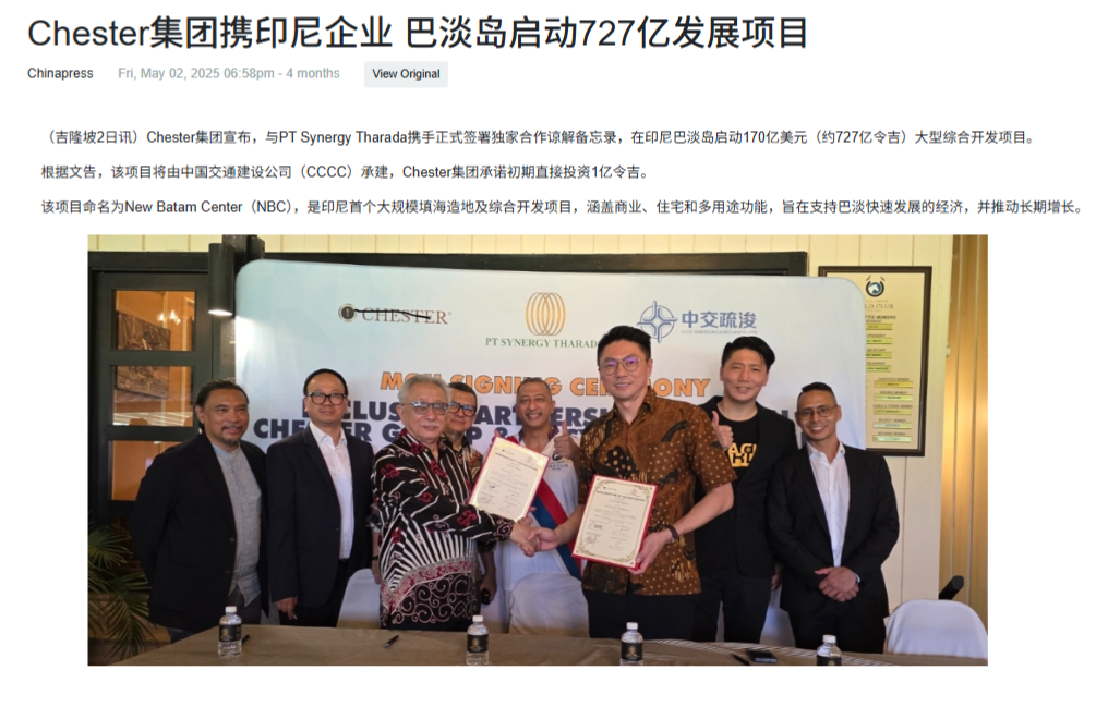 Chester集团携印尼企业 巴淡岛启动727亿发展项目