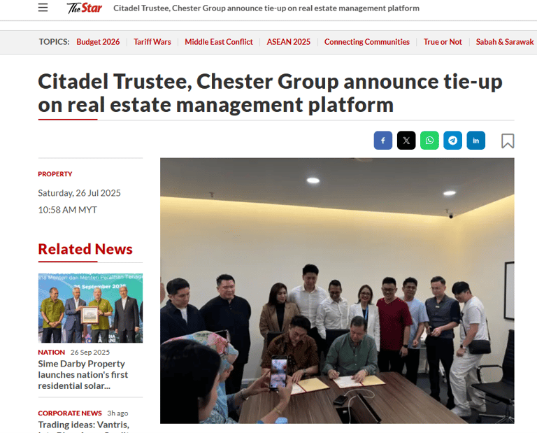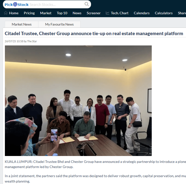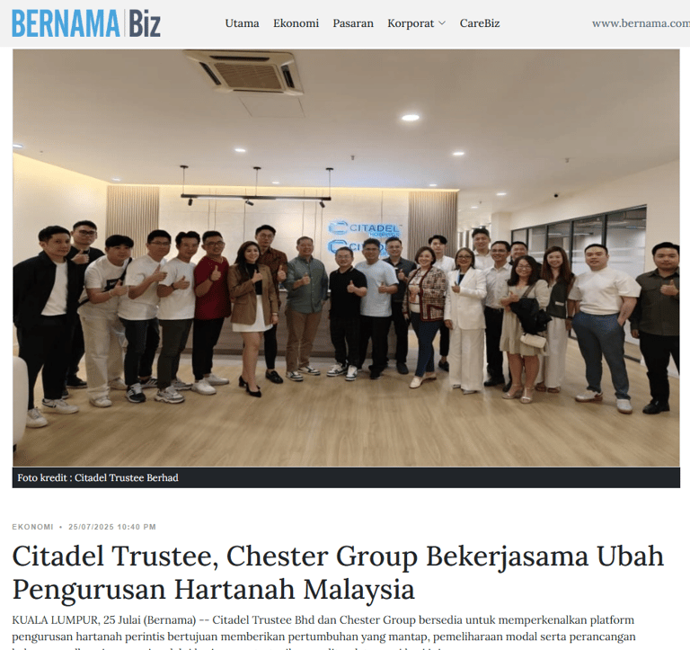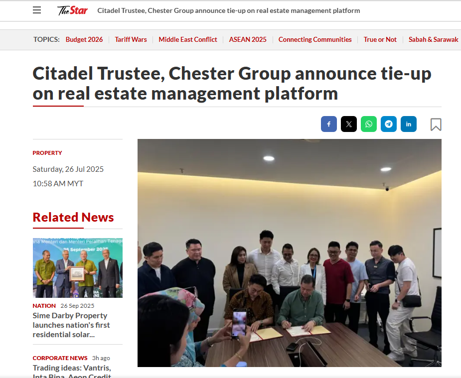 Citadel Trustee, Chester Group Berkerjasama Ubah Pengurusan Hartanah Malaysia