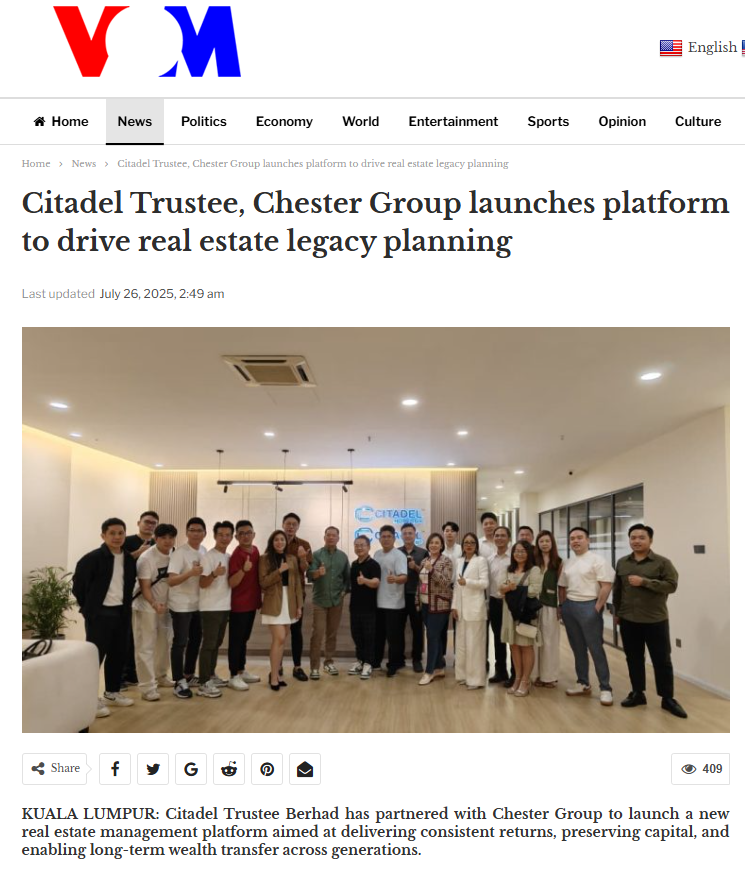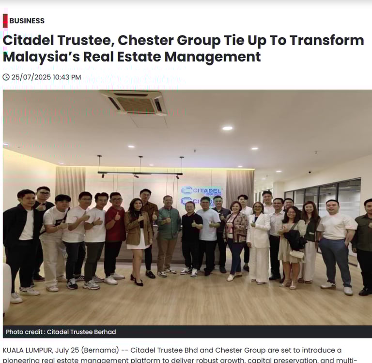 Citadel Trustee, Chester Group Tie Up To Transform Malaysia's Real Estate Management