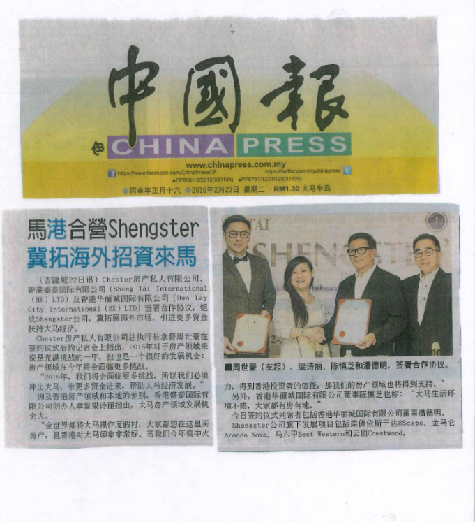 Sheng Tai International seals RM25 million deal with Chester Venture Group
